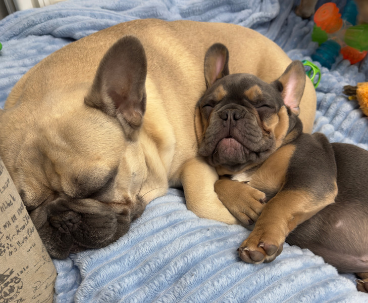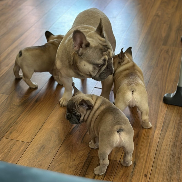 Here at our small, but mighty, family business, we have dedicated ourselves to the art of French bulldog breeding. With a deep-rooted love for these comical companions, we have made it our mission to share our joy, love and delightfulness with others. When you become a part of our family, you are not only welcoming a new addition but also embarking on an extraordinary journey filled with entertainment. Our breeding program is designed to ensure the health, temperament, and overall well-being of our French bulldogs. We adhere to the highest ethical standards and are committed to responsible breeding. All of our puppies are raised in a loving and nurturing home environment, resulting in happy, healthy companions. But Love & Frenchies is more than just a breeding program; it is a lifetime of support. Our family is here to guide you each step of the way to make certain that your journey with your new BFF is nothing short of extraordinary. Join our Frenchie-loving family today and together, we will create memories that will last a lifetime, filled with love, joy, and the purest form of companionship by the irresistible charm and cuteness of our beloved French bulldogs.